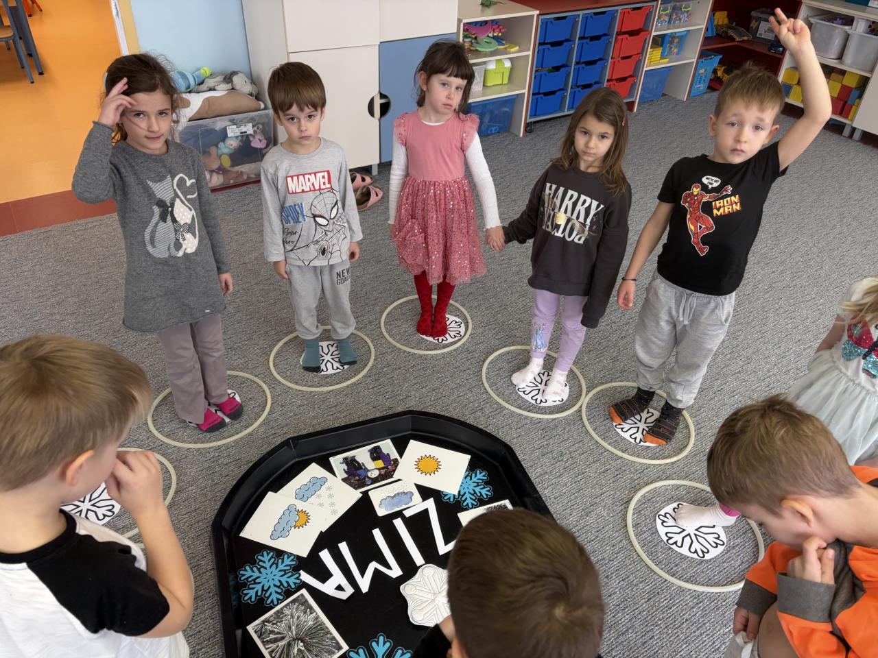 Celým týdnem nás provázela písnička: „Padá snížek bílý, v okně bije mráz. Bílá paní Zima už je tady zas…“