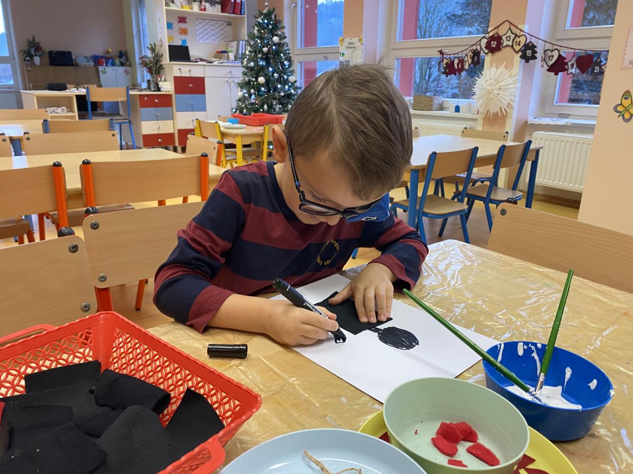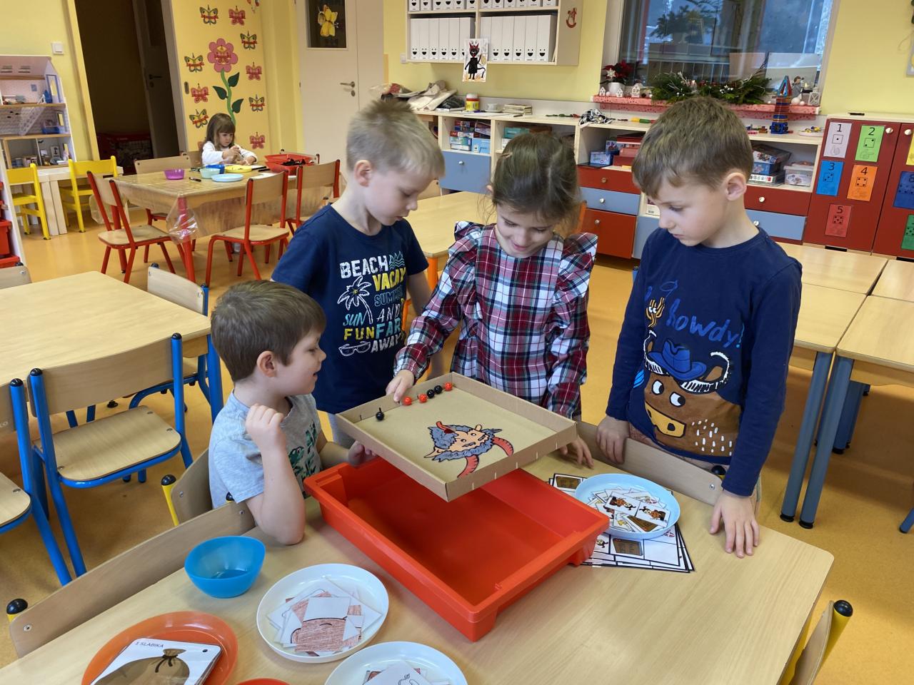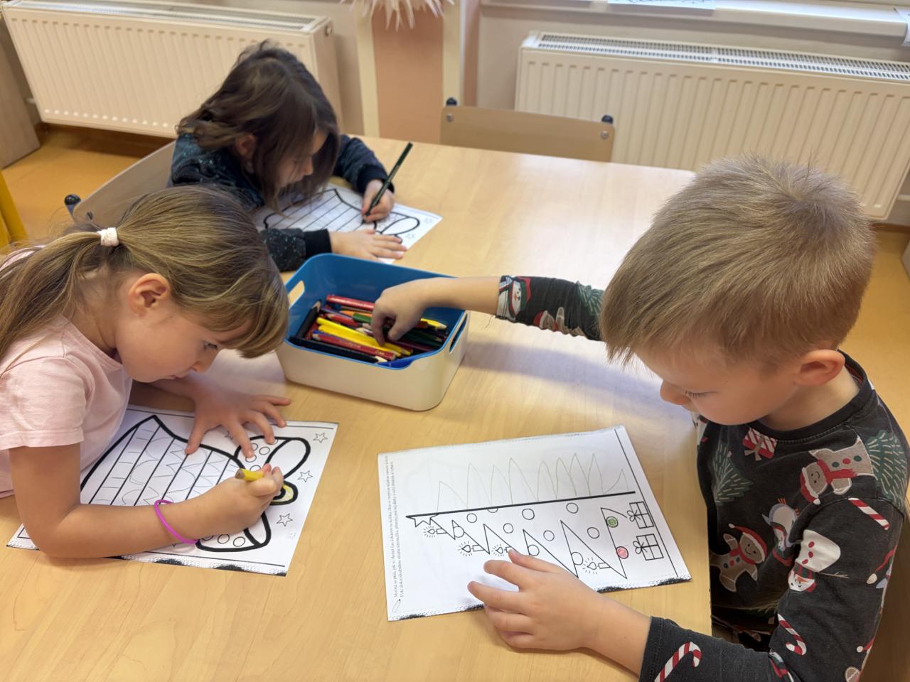 Jen co odešel Mikuláš, začali jsme se věnovat vánočním svátkům. Každý den na nás v adventním kalendáři čekal nějaký úkol, který jsme se snažili vždy společně splnit. Povídali jsme si o vánočních tradicích. Lovili jsme kapříky a třídili je do kádí.