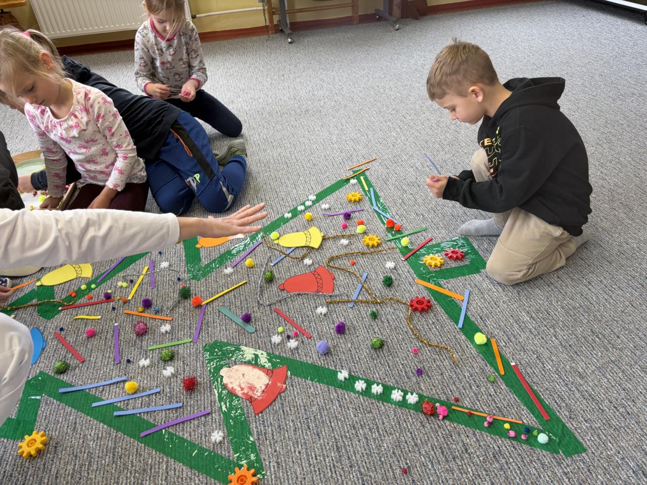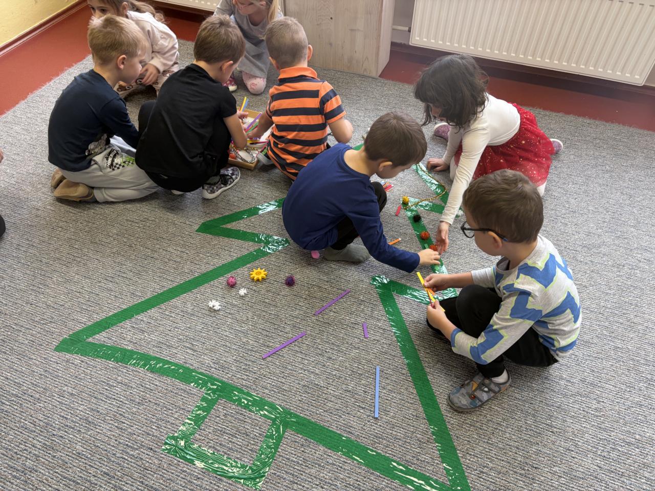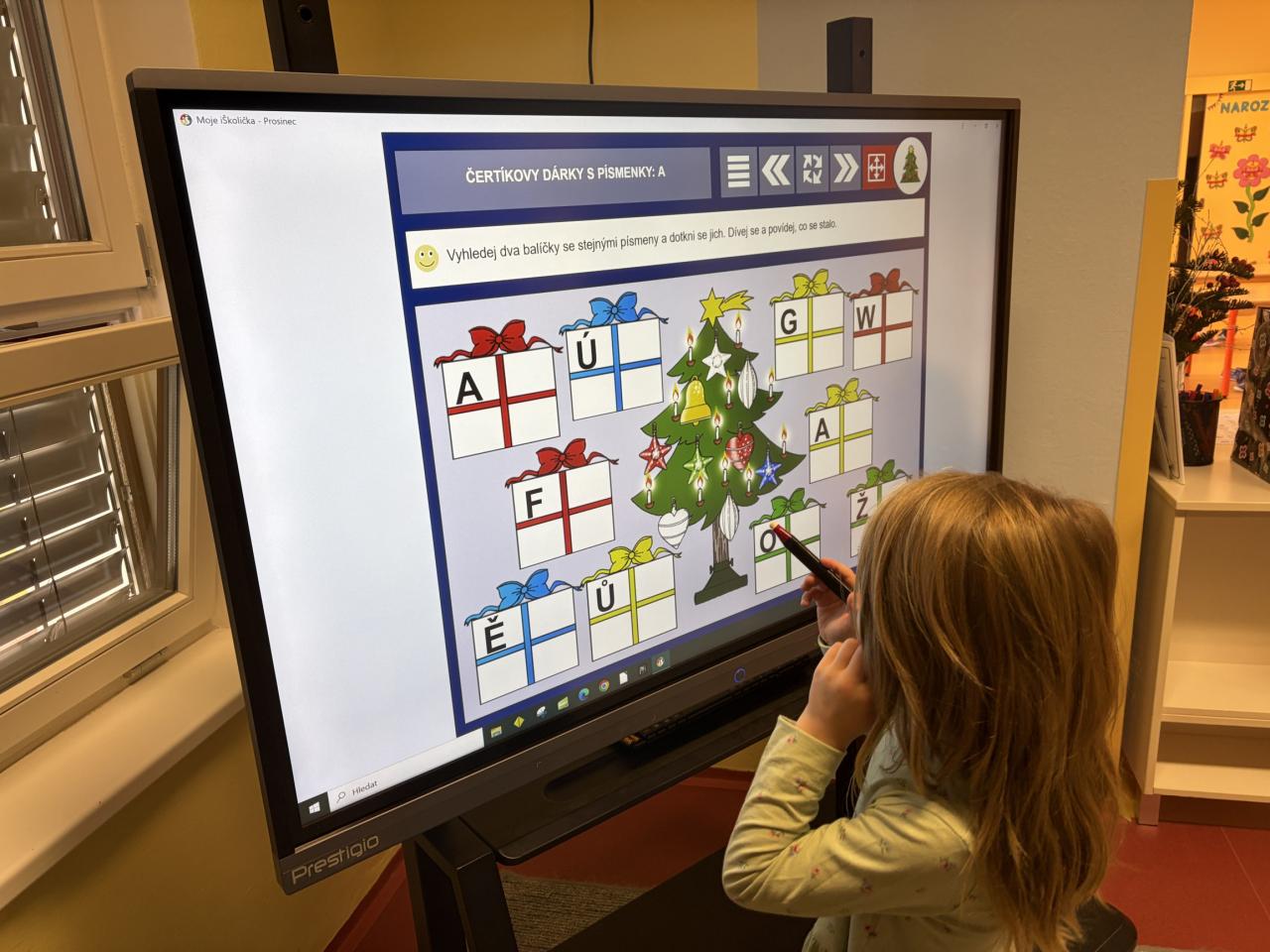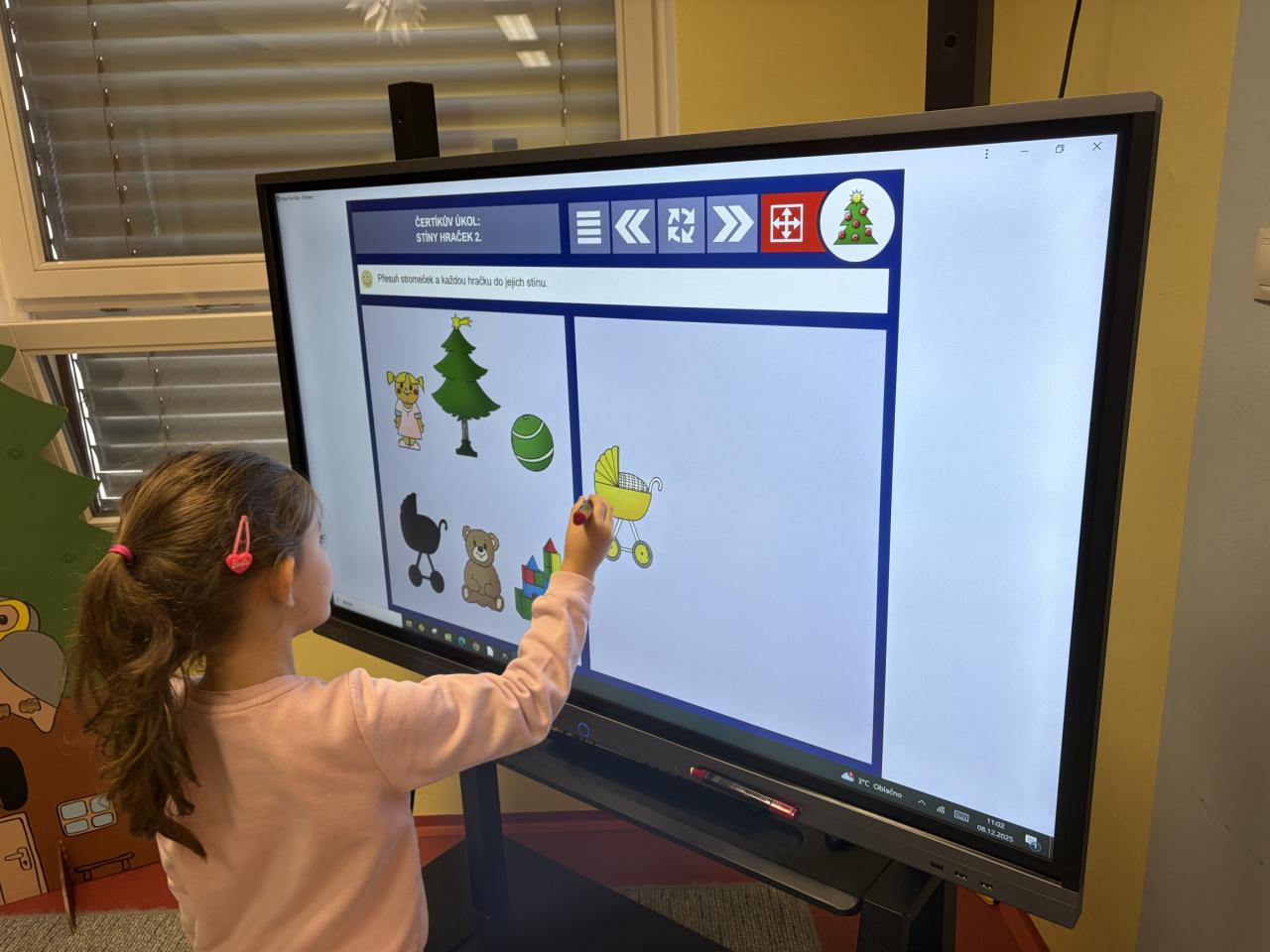 Procvičovali jsme spolupráci s kamarády při zdobení stromečku v prostoru třídy a na interaktivní tabuli jsme třídili baňky podle barev, tvarů a velikostí.